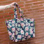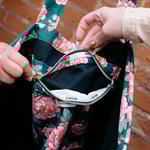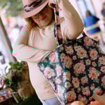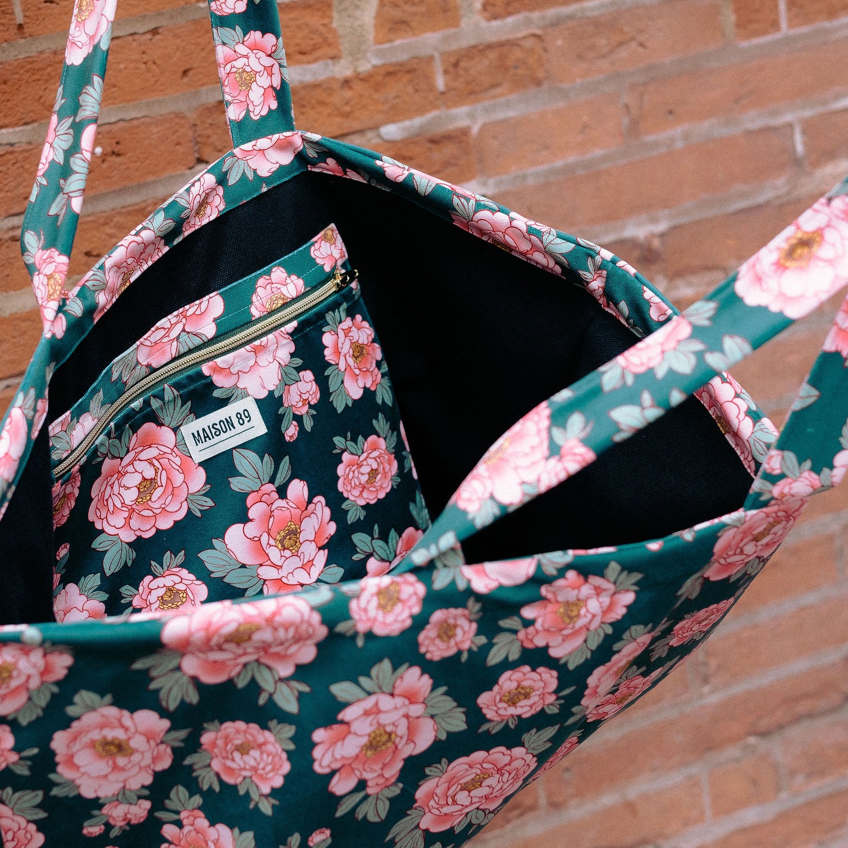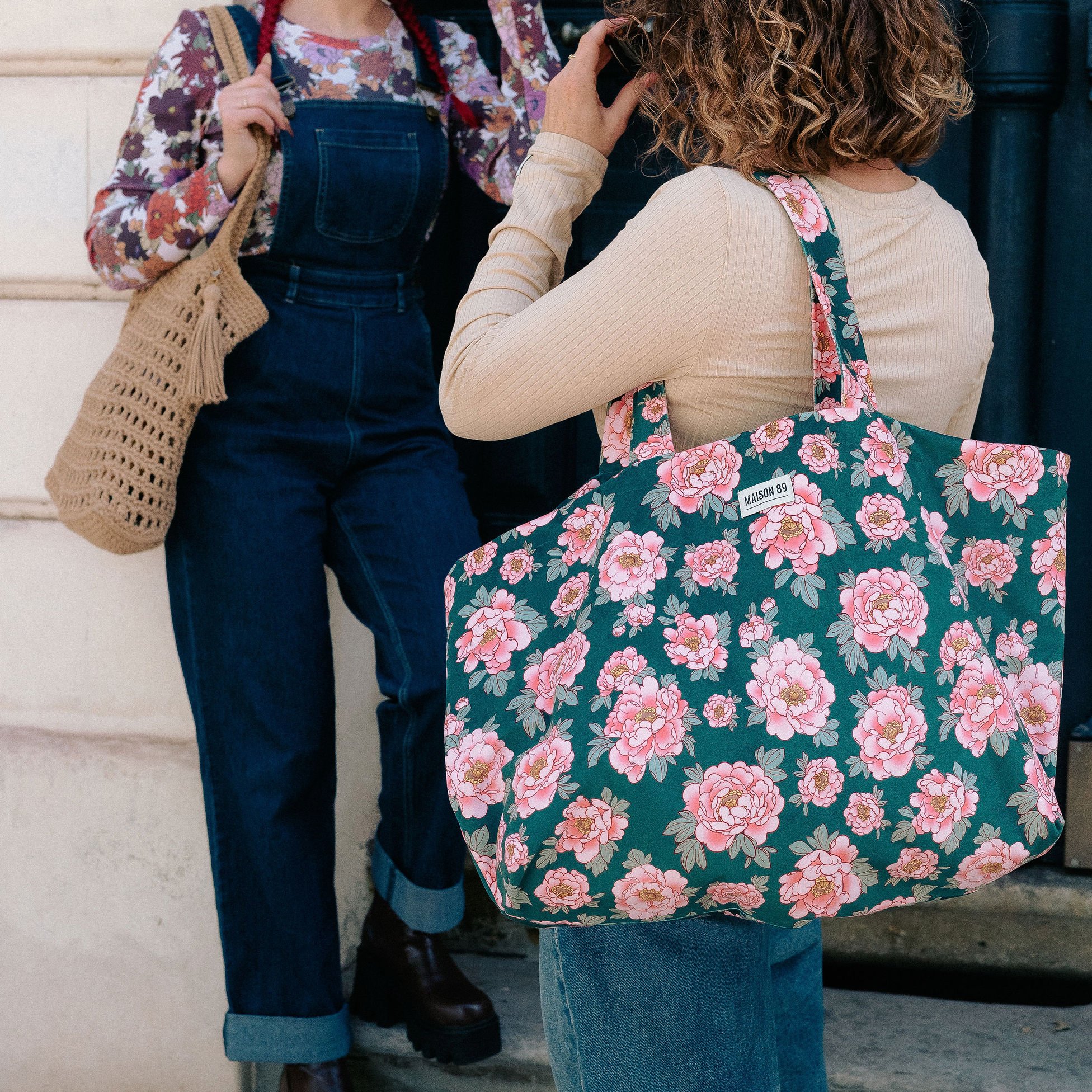 Un cabas fleuri qui a tout pour plaire : du velours doux au toucher, un imprimé qui attire l’œil, et assez de place pour trimballer votre vie (ordi, courses,...)